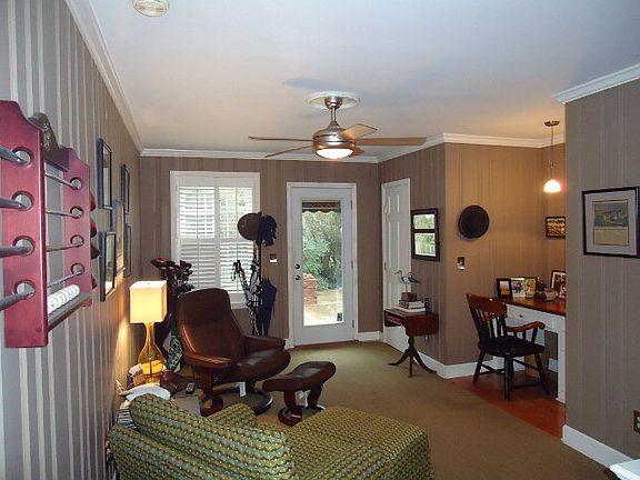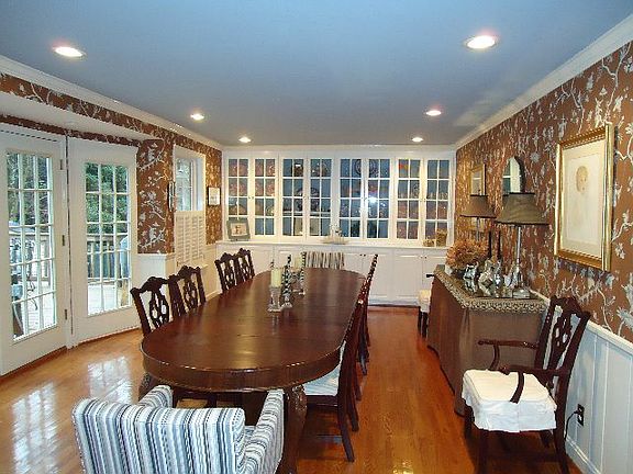Entertainer's Dream House! The formal living room features hardwood flooring, beautiful wood burning fireplace and a large bay window with window seat. Adjacent to the living room, you will see a comfy den with French doors, Custom desk and shelving, half bath, and deep storage closet.The dining room is suited for large, formal gatherings and offers hardwood flooring, custom china cabinet and french doors opening to the Trex Deck. Upon entering the Gourmet Kitchen and Breakfast room, you will notice the attention to detail in this area. Heart of Pine flooring, Granite Counters, Center Island with Breakfast Bar, 6 Burner Cook Top, Two Dishwashers, Wine Cooler, Double Ovens, Ice Machine, and Prep Areas that will certainly please any chef! The Owners Suite is also nice with a sitting room that overlooks the backyard, a full bath with double sinks, tile back splash, and spacious glass shower. The playroom, 3rd bedroom and bath are located on the lower floor. Welcome Home!