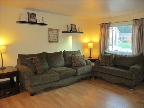 Charming 3 Bedroom Brick Ranch on Cul-de-sac in desirable neighborhood. Finished basement with wood burning fireplace, full bath, and sliding door access to back yard. One car integral garage. Nice sized bedrooms. Eat in kitchen with stainless steel appliances including a gas stove. Paved driveway was recently sealed and allows for plenty of off street parking. Large front window lets in lots of natural light to living room. Laminate wood flooring and wall to wall carpeting throughout. Tiled flooring in bathrooms. Convenient access to Rt. 30 and shopping. Beautiful nature setting views from master bedroom and kitchen. Shed included. Won't last!