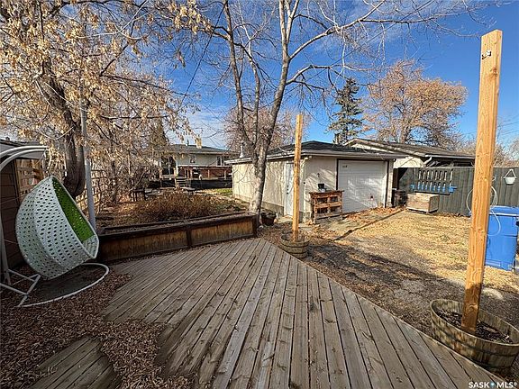Welcome to 731 Retallack Street in Washington Park, close to restaurants, schools, parks, and shopping. This 1958 bungalow offers 3 bedrooms, 2 bathrooms, 768 sq ft, and a separate basement suite. The front porch leads into a bright west-facing living room with hardwood floors. The dine-in kitchen features plenty of cupboards, room for a table, stainless steel appliances (fridge, stove, microwave), and patio doors to the deck. Down the hall is a 4-piece bathroom with vinyl tile and updated fixtures, plus two good-sized bedrooms with hardwood and ample closets. The fully renovated basement is set up as an optional secondary suite with side entrance. It includes an open kitchen/dining and living area, the home’s third bedroom (window egress may not meet current code), vinyl plank flooring, and a 4-piece bathroom. A shared laundry area (washer and dryer included) leads to the utility room with a high-efficiency furnace and 100-amp panel. The home sits on a large rectangular lot with a 16’ x 24’ insulated oversized single garage with gated lane access. The fenced, well-treed yard offers a large deck and patio, firepit area, lawn, garden space, and a rear sun deck great for entertaining. Additional features include central A/C, high-efficiency furnace, on-demand water heater, and all appliances up and down. Both the house and garage have been recently re-shingled. Some of the furniture may be negotiable. An ideal option for first-time buyers, investors, or anyone seeking a revenue property.