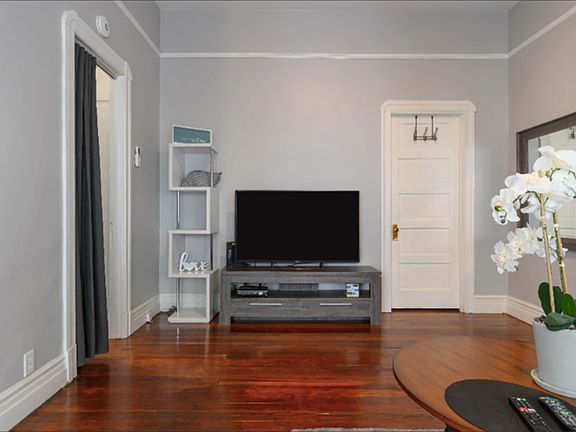 Hardwood and tiles thru out, bathroom has lately remodel with walk in shower. Spacious bedroom, work desk, iron board, iron are included. Kitchen are fully equipped for basic cooking. Perfect for business, vacation travel or executive stay.