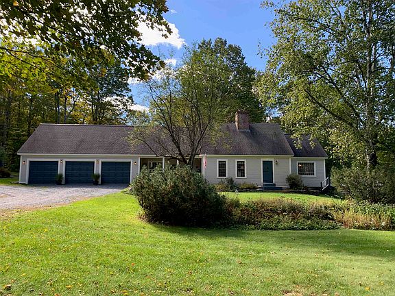 A traditional styled home peacefully located in an area known for substantial and privately sited properties! This 4 bedroom home presents comfortable and practical living space, in a well designed floor plan. The 9 acres feature extensive open lawns surrounding the home and the beauty of a mature maple woodland. An oversize 3 car garage opens to a classic covered front porch entry. On the main level a generous 22 ft. eat-in kitchen adjoins a spacious 19 ft. dining room. In turn, the dining room opens to a large outside deck, ideal for informal meals while viewing lawn activities. This combination of a large kitchen, a bright dining room, and a spacious outside deck are easily the center of home life. Completing the ground floor are a cozy living room with fireplace, a quiet den, a practical laundry room with 3/4 bath, and large entry foyers by each front entry door. On the 2nd floor are 4 well separated bedrooms, 2 quiet office spaces and 2 full baths. The full basement contains a useful 15x13 storage room, a 17x17 workshop with walk out entrance and a large mechanical room. On pastoral land surrounding the home is a game field/family event size level area, great gardening space and stonewalls. An attractive detached 2 car garage provides excellent storage for lawn/sports equipment. The attractive residence is comfortable, with a classic New England appeal. The land is true pastoral Vermont! Equally suited as a beloved vacation retreat or a well located year round residence!