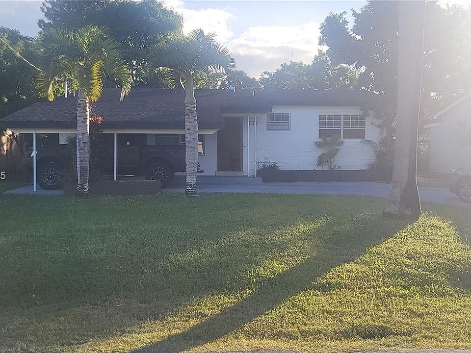OWN IN THE HEART OF HALLANDALE BEACH. SEPARATE LAUNDRY ROOM. PLENTY OF PARKING WITH A SEMI CIRCULAR DRIVEWAY WITH A CARPORT. CANAL VIEW, LOTS OF TROPICAL FRUIT TREES. CLOSE TO GULFSTREAM, BEACH, HOUSES OF WORSHIP AND FINE DINING. NO HOA OR ASSOCIATION FEES! THIS PROPERTY IS CURRENTLY MID-CONSTRUCTION AND OFFERS A RARE OPPORTUNITY TO FINISH AND CUSTOMIZE TO YOUR TASTE. PERFECT FOR INVESTOR AND/OR END-USER.