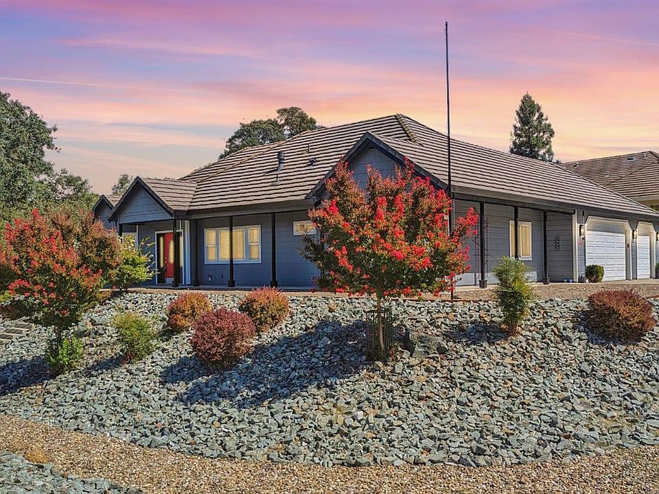 Discover the modern comfort in the heart of The La Contenta Golf Course community. This corner lot property offers a low-maintenance yard, OWNED Solar Panels and OWNED Tesla Power Wall for eco-friendly living. Inside, the vaulted ceilings, concrete floors, and decorative lighting create an inviting ambiance that perfectly complements the smooth imperfect drywall. The oversized 3-car garage, complete with a bathroom, is a haven for projects and storage. Indulge in luxury in the master bathroom, featuring a spacious walk-in closet, a walk-in shower, dual vanity, and a lavish Kohler river bath whirl pool tub with many features to help you relax after a long day. The kitchen is a chef's dream, boasting granite countertops and a great room concept for entertaining. Step onto the stamped concrete back patio and relish the fully fenced private backyard with custom built-in covered seating areas, an entertainer's paradise. Experience the convenience of being close to Lake Hogan and the Calaveras River trailhead, perfect for outdoor enthusiasts. Don't miss the chance to embrace stylish and efficient living in this must-see home located in a desirable community!
