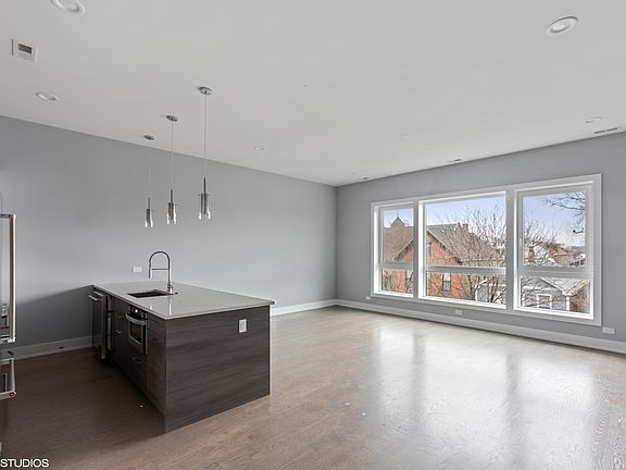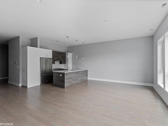IMPRESSIVE CONDO WITH UNRIVALED VIEWS OF THE CHICAGO SKYLINE! This 3 Bed 2 Bath Penthouse provides a full city lot of living space in the living room/dining room, with an impressive 24.5 feet of width! Front and exterior deck with stunning views will light up the living space and allow the summer breeze to sweep you off your feet. Stunning Chef's kitchen with professional SS Kitchen-Aide appliance package, custom European cabinetry, quartz counters provide an amazing layout with ten-foot island/breakfast bar, and the In-island sink sets this unit apart from all others. Oak hardwood floors throughout. Quartz and marble complete the striking en-suite master bath, custom closets, and garage parking included!