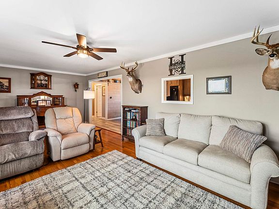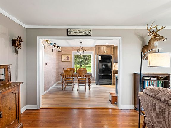 Now Available in the Rossville School District – With a Large 76 x 32 Pole Barn! Enjoy coffee on the front covered porch, the back enclosed porch, or back patio. This well-maintained 2-bedroom, 2-bath home features a custom Zinn kitchen, a spacious primary suite with a massive walk-in closet/dressing room, and original hardwood floors. Recent upgrades include new windows, an iron filter and water softener, and a spray-foamed crawl space with a vapor barrier for added efficiency. The HVAC system was installed in 2016. The oversized two car attached garage is insulated and offers its own dedicated heat source. Outside, you’ll find a large pole barn with a freshly poured concrete floor with a pickleball court, ideal for storage, hobbies, or a workshop.