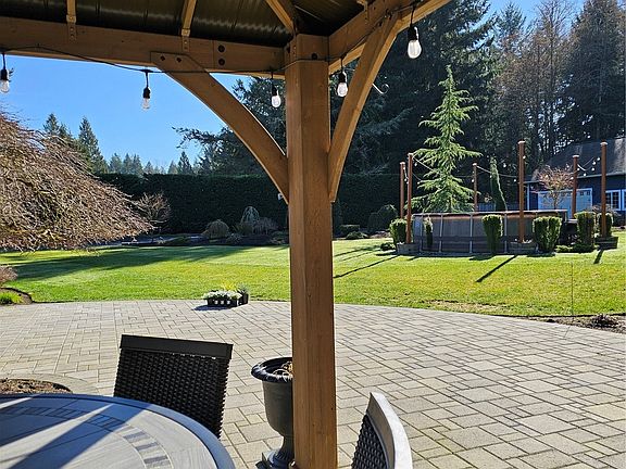 Absolutely beautiful yard with pride and ownership! Stunning waterfall pond! Kitchen granite island & counters! Fully fenced yard on 1 1/4 acre with 3 stall high ceiling detached shop! Large backyard gazebo stays with tv & is great for all 4 seasons! Wonderful property for entertaining! Quite area with mature manicured trees !Sprinkler system, heat pump with backup generac generator, all installed last year! Large shop out back is 30x36! Relax in this gorgeous rambler on this oasis! 3 bedroom, 2.5 bathrooms, den, family and living room all fits perfectly in this rambler !Primary bedroom has 5 piece bathroom, & your own soaking tub! Above ground pool & 2 large propane tanks stay with home!