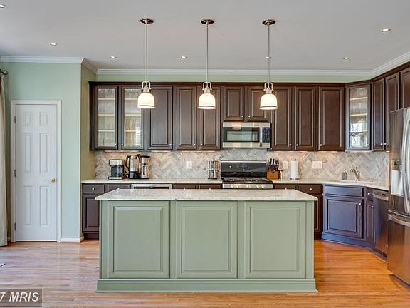 Elegant and spacious end unit townhouse in a great location. Features include an open floor plan, remodeled kitchen with granite countertops and stainless steel appliances, bathroom updates, wood floors and crown molding. Expansive master suite with vaulted ceiling and walk-in closet. Beautiful deck and a lower level walk-out basement that backs to woods.