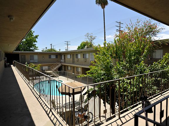 This spacious 3 bedroom/2 bath is situated on the second floor with a view of our tropical landscaping and refreshing pool! You will Love it!! It comes with 2 parking spaces,we have a laundry room onsite, wood floors through out unit, fresh paint, spacious floor plan and gated secure parking. Conveniently located near shopping, entertainment, schools (Valerio Elementary and Robert Fulton college Prep School Junior HS and HS) and 405 Fwy.
