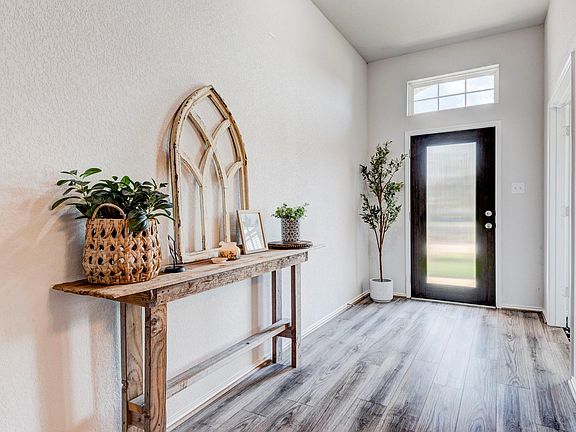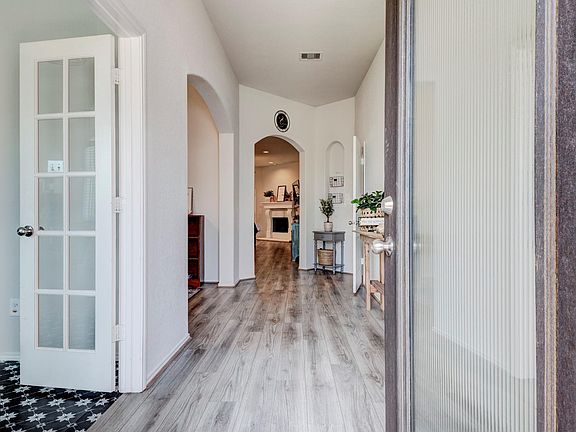 Gorgeous stone and brick one story, 4 bed, 2 bath home with study and formal dining! This spacious home has 10 foot ceilings, wide hallways and Rigid Core LVP flooring in the main areas for easy clean up. Open floor plan with stunning kitchen perfect for entertaining! Luxurious dark granite countertops contrast beautifully with the white cabinetry, 42" uppers, island, tile backsplash, tons of work area and pantry. Kitchen perfectly situated to add farm house table for a stunning breakfast room. Open good sized living room with fire place opens to covered back patio with tv mount. Bedrooms are located off to the right of the home with a spacious primary bedroom with huge closet and attached bath with dual sinks, vanity space, wc, soaking tub and standing shower. Generous secondary bedrooms sit toward the back of the home. Tons of upgrades- recessed can lights, ring doorbell, full sod, irrigation system, garage door opener, full gutters, 4 sides brick and no back neighbors! Tour today!