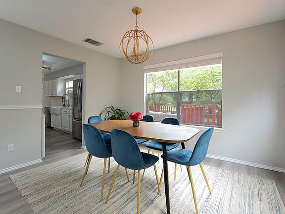 Large master bedroom with high ceilings. Large master bath with 2 separate closets. Backs up to the greenbelt. Large deck with lots of trees. Text for photos.