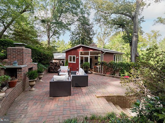 Beautiful Mid-Century Modern home designed by renowned architect Charles Goodman in desired Hollin Hills. Treetop views on private .44 acre lot across from parkland. Walking distance to pool, tennis courts. Only minutes away from the Beltway and Old Town…but seems a rare, calm oasis in Northern Virginia. Enter into home with light-filled family room with wood-burning fireplace, hidden storage closets, full bathroom and separate laundry room. Stairs to bedroom level with three large bedrooms and second full bath. Vintage Nelson Bubble lamp leads to open upper level with floor-to-ceiling windows, refinished hardwood floors, second wood-burning fireplace (above-roofline chimney rebuild in 2020) in living room with slate tile surround, separate dining room, updated kitchen with new quartz countertops and bar seating, replaced stainless appliances and new lighting. Hallway attic access with attic fan. Tiered outside living areas include side patio with rebuilt brick wall, brick patio through sliding glass doors in dining room to large outdoor entertaining area with huge outdoor fireplace. Don't forget to take the steps up to top of property with studio/ workshop (Wi-Fi accessible with router booster—ideal for remote work…or quiet contemplation) with electricity, glass floor-to-ceiling windows and secret patio/garden area. Cleared ascent presents an ideal palette for the inspired gardener (original plant materiel blueprints by esteemed era landscaper Dan Kiley available upon request for the aficionado); tiered landscaping and small destination paths/landings would take the property to showcase level. Some of the additional updates include new HVAC system, freshly painted throughout, gorgeous refinished oak hardwood floors, new roof (2018).
