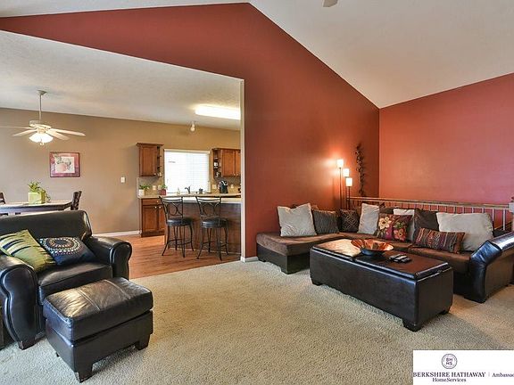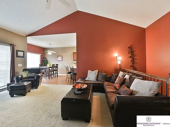 4/3/2, Spacious walk-out ranch, tree-lined, amazing views, & no back neighbors. Over 2200 sq ft. Clean & well kept, warm colors, Vaulted main room w/ Fireplace. Maple cabinets throughout. Large Deck overlooks fenced backyard. Dual Vanity in Master. Bsmt has large recroom, 4th bedroom & luxury tiled bathroom. Plenty of storage as well. Millard schools