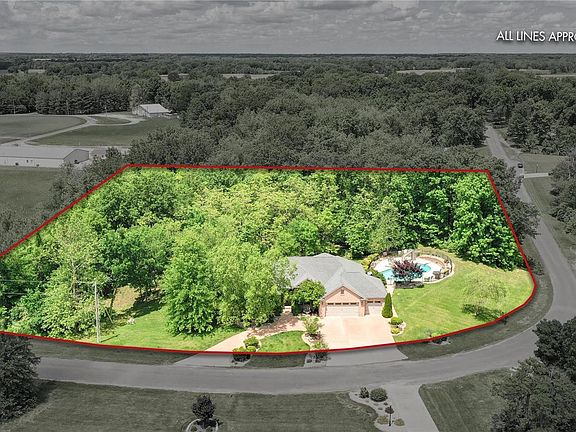 Custom built one story home in Timbercrest Subdivision. Home situated on 2.25 ac on a private, wooded lot. Inviting circle drive & entrance that leads to entry foyer, dining room w/ stunning chandelier, office w/ bay windows & vaulted ceiling, living room w/ gas fireplace & custom kitchen w/ breakfast bar, eat-in area & stainless appl. Screened room overlooks a private, wooded yard & pool area. Main level laundry & mud room. 1/2 bath. Spacious master suite w/ tray ceiling & gas fireplace. Walk-in closet. Master bath offers double sinks & separate tub & shower. Two additional bedrooms & full bath. Plantation shutters & crown molding throughout the home. Lower level offers a wet bar and seating, large family room w/ gas fireplace and built-in shelving, ample windows inviting the outdoors in. Exercise room. Additional bedroom w/ walk-in closet & full bath. Utility & storage areas. Walkout basement to covered patio, private yard, in-ground salt water pool. Mature landscaping. 3 car garage.
