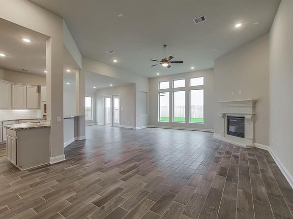 Boasting a stone elevation, high ceilings, tile flooring, a fireplace with a stone surround in the great room, and a study with French doors, this stunning Beazer home has everything you want and more. Create culinary masterpieces in the gorgeous kitchen, featuring granite countertops, tile backsplash, a butler's pantry, and stainless steel Whirlpool appliances. Unwind in the spa-like master suite, complete with a double tray ceiling, walk-in closet, dual vanities, a tub, and separate shower. Spend a nice day outdoors relaxing or entertaining guests in the shelter of the covered patio. Enjoy easy access to major roadways, such as Highway 6 and Highway 288. Delve into nearby shopping, dining, and entertainment at Pearland Town Center. The amenities of Bluewater Lakes include a playground and a pool. Ask the Beazer New Home Consultant about our top of the line SPRAY FOAM insulation!