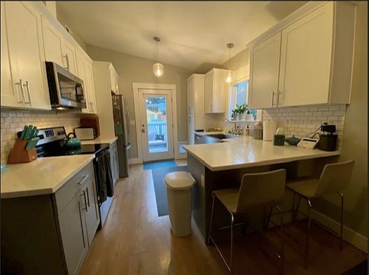 Darling fully remodeled in 2016 Craftsman 3/3 home with parking. Fully furnished with modern furniture. All Appliances - Refrigerator, Microwave, Dishwasher, Stove/Oven, Washer, Dryer. Dishes, Cookware, Linens . 2 lIving areas. Gorgeous Professionally landscaped Backyard and Covered Deck. Super clean and immaculately maintained. Fabulous neighborhood with super friendly neighbors. Includes yard maintenance in the spring and summer. Downstairs is fully carpeted with a living area, guest bedroom, bathroom with a laundry room, toilet, sink and shower. Upstairs are two bedrooms (one being used as an office but can easily convert to a bedroom if desired). There is a large full bathroom between the bedrooms and the master has a separate full bathroom. Home is very light, bright and airy and easy to maintain. Furnished - tenant pays utilities. Will consider furnished with utilities for additional cost. No Smoking , Utilities negotiable ..can rent Furnished with Utilities for $4000 or Furnished with tenant paying utilities for $3600. 6 month lease minimum