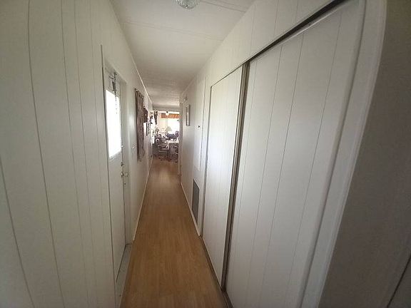 Land Lease, 55+ Community. Clean, well-maintained, semi-furnished, 1980 home. 2 Bedrooms and 2 full bathrooms. Updates include flooring and a roof over. Spacious floor plan with lots of natural light. Open kitchen and living room design. Enclosed lanai for extra living space to live the South Florida Dream. 1 carport parking with a double drive way. 8' x 8' shed for your tools and toys. Live in Paradise and not be priced out of the market. Palm Lake Estates is an age-qualified community where 1 person has to be 55+ and the other can be 40 years or older. This is a land lease, gated, resort style community (which means you own the home and lease the land) with 3 club houses, 3 pools and 2 hot tubs. Free boat or rv storage. Community is located on Blue Heron Blvd, just west of I-95 and less than 5 miles to Singer Island beaches. 2022 site rent is approx. $984/month including garbage and pass thru property taxes. Buyer must submit a resident application for approval, which includes a credit and background check, before the home can be purchased. Measurements are approximate.