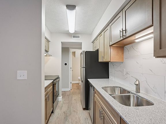 The three bedroom towhomes features the following: sunken living room, wood plank vinyl flooring, wood burning fireplaces (select units), kitchens that have new cabinets, countertops, and black appliances, large pantry, full size washer and dryer, additional storage on the patio, walk in closet and updated bathrooms.