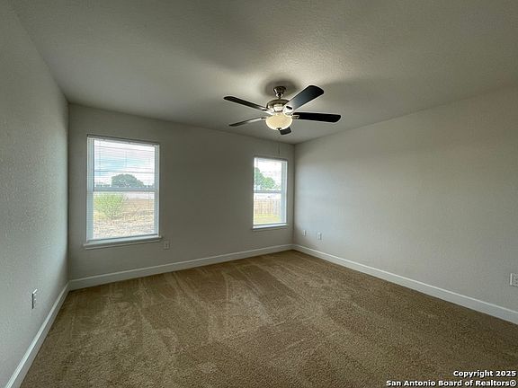 Town home located in Converse. Near restaurants, Randolph Air force base, shops and restaurants. Place include private fenced in yard, 1 car garage, 2 car driveway. Interior features include: stained concrete floor, granite counter tops, accent ceiling, ceiling fans, electric oven, built in microwave, dishwasher, refrigerator, washer and dryer hook ups $25 extra will be added to the rent for an HVAC filter delivery program which is mandatory with properties we manage.
