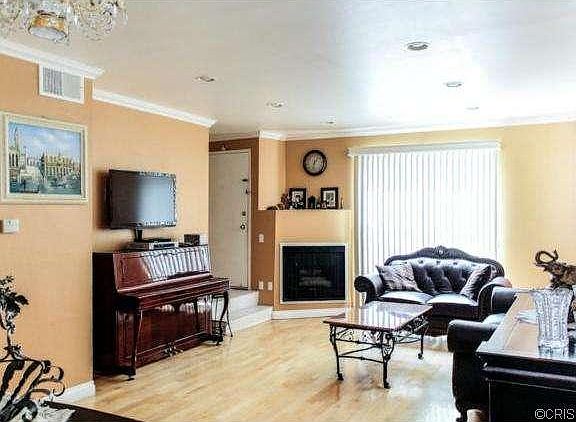 End unit Townhouse with attached private garage and excellent floor-plan! 2 bedrooms + 2.5 baths townhome offers 2 Master suites, fireplace in the living-room and large private patio. Remodeled throughout with laminate flooring, custom paint walls and more! Large kitchen with breakfast nook has refinished cabinetry + granite countertops. Ceilings with crown moldings are tall and smooth! Community features big pool, BBQ, playground and low HOA dues! Do not miss view of the swimming pool and playgrounds with matured trees from the master bedroom window!