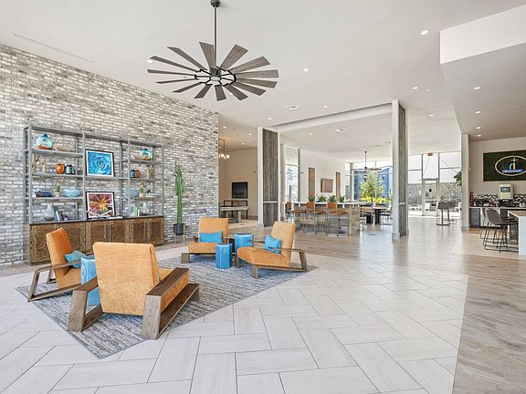 - Exterior features: *Select Apartment Homes, Barbecue, Bark Parks and Wash Station, Carports and Garages Available, Co-working Space, Conference Room, Dillo Market **COMING SOON**, Electric Vehicle Charging, Fenced Yards *, Fire Pit Lounge, Garden, Gourmet Coffee Bar, Granite Countertops, Green Space with Al Fresco Dining, Lawn, Package Receiving, Playscape, Soaking Tubs, Stainless Appliances *, Standing Showers *, TV Lounge, Undermount Kitchen Sinks with Gooseneck Faucets, Wood Plank Style Flooring