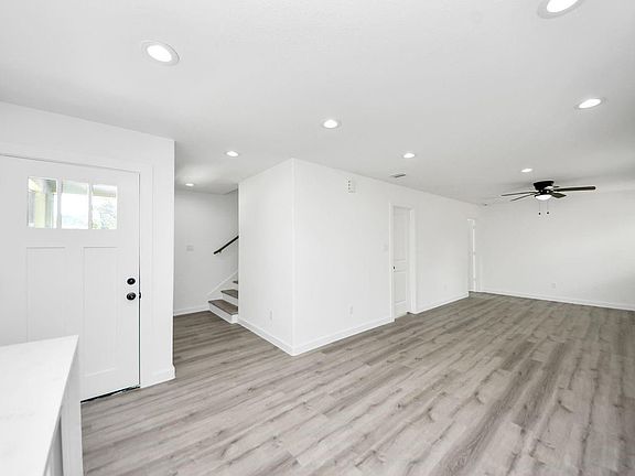 This home has an open layout with lots of natural light. It features a bedroom and full bathroom downstairs and the primary bedroom upstairs for extra privacy. In total, there are three full bathrooms and plenty of space for family and guests.