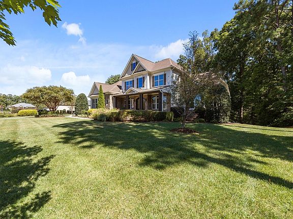 This spacious 6,785 square foot home with 5 bedrooms, 5 full bathrooms, and a full basement offers endless possibilities for multi-generational living. With multiple gathering areas, private bedroom suites, and flexible spaces ideal for recreation, work, or extended-stay guests, there's room for everyone to spread out while still enjoying time together. Nestled on a sprawling .72-acre private wooded golf course homesite, this home offers not only a multigenerational residence but a serene retreat. The finished 9' basement provides the perfect setup for an in-law suite, teen retreat, or entertainment hub, making the home as functional as it is impressive. The heart of this home is undoubtedly the gourmet kitchen, highlighted by site-finished hardwood floors, recessed lighting, and custom glazed raised panel cabinetry with crown trim and under-cabinet lighting. A spacious granite-topped island with bar seating anchors the room, complemented by elegant pendant lights and glass display cabinets for added style. Double wall oven (convection microwave) a gas cooktop beneath a custom range hood, and a designer tile backsplash complete this chef's space. The sun-filled breakfast area features skylights and walls of windows, offering the perfect spot to enjoy casual dining with views of the very private backyard. The kitchen flows easily into the vaulted family room with a wall of windows and a stone surround gas log fireplace. The main level hosts both the owner's suite and an additional bedroom. The owner's retreat showcases plush carpet, crown molding, and a tray ceiling with a decorative medallion, while a triple window and two additional windows fill the space with natural light. The spa-inspired bath features tile flooring, a tray ceiling, his and her vanities with granite countertops, and plumbing already in place for a freestanding tub. An oversized tiled shower steals the show with a decorative tile border, two (separate shower areas), both with double showerheads. The expansive full basement is a home within itself, offering unmatched versatility for multi-generational living or entertaining on a grand scale. A custom kitchenette with cabinetry anchors the space, while a game room, billiards room, rec room, and a cozy nook for a card table provide endless options for gathering with family and friends. Additional rooms include a yoga/exercise studio, office, flex room/bedroom, and a full bathroom, making this level as functional as it is impressive. A gas log fireplace with a dramatic stone surround rising to the ceiling and hearth adds warmth and character. Ample unfinished storage and a mechanical room complete the lower level, ensuring space and practicality are never in short supply. A very private fenced backyard is an entertainer's dream which backs p to the 6th tee box of the Hasentree golf course. A spacious fire pit area with a stone knee wall sets the stage for evenings under the stars. Out front, the covered porch with a slate floor overlooks the sprawling yard. Residents of Hasentree enjoy resort-style living and world-class amenities, including a Tom Fazio-designed course, multiple pools with a waterslide, tennis and pickleball courts, spa and fitness facilities, a scenic fishing pond, plus a vibrant clubhouse with dining and year-round activities. Surrounded by 350+ acres of open space and scenic trails, Hasentree offers a perfect blend of elegance, recreation, and family-friendly living—all within minutes of Falls Lake and convenient to Raleigh. Other notable highlights include central vac system, water softener, wired for security system and motion sensors, and pre-wired for speakers in numerous locations.