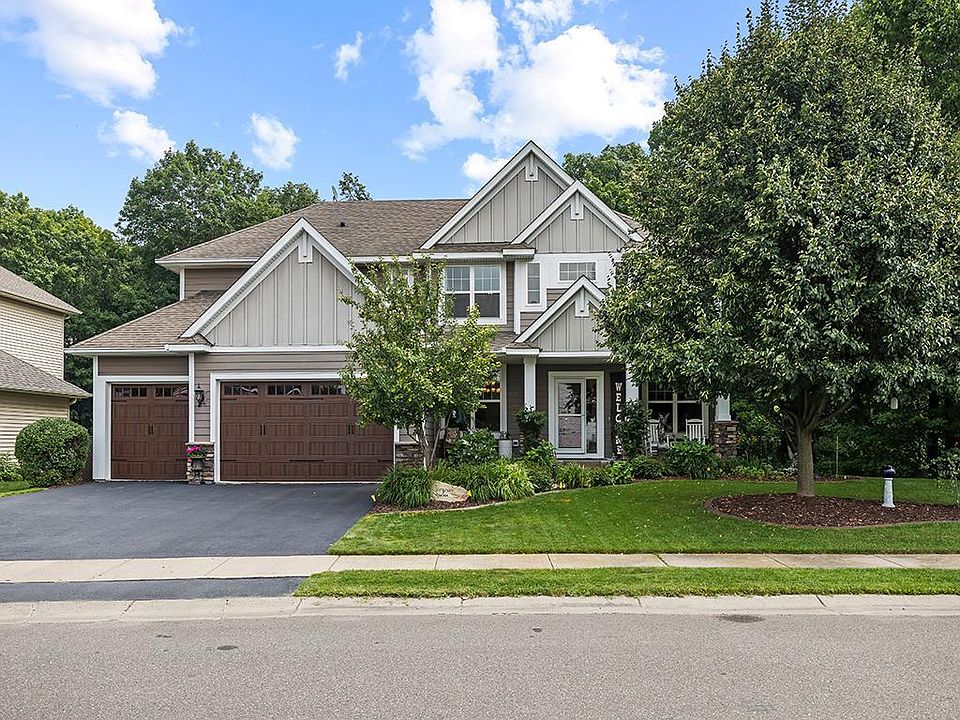 Welcome to this beautifully updated 5-bedroom, 5-bathroom two-story home in the desirable Nottingham Palisades neighborhood of Maple Grove. Curb appeal shines with custom concrete landscape edging, vibrant perennial gardens, and built-in holiday lighting that highlights the home’s elegant rooflines. Inside, the main level features a warm, inviting family room with a gas fireplace and fresh paint throughout, opening into a gourmet kitchen with newer stainless steel appliances. Upstairs offers four spacious bedrooms, a versatile loft, and convenient laundry. The walkout lower level is designed for entertaining, complete with a second full kitchen, wet bar, expansive rec space, a private fifth bedroom, and plenty of storage. Step outside to enjoy the private backyard with wooded views, a stamped concrete patio, and a refinished deck. Recent upgrades include a new HVAC system, tankless water heater, water softener, and leaf guard gutters. Located in a vibrant community with direct access to scenic trails and frequent wildlife sightings, this home perfectly blends comfort, functionality, and lifestyle.