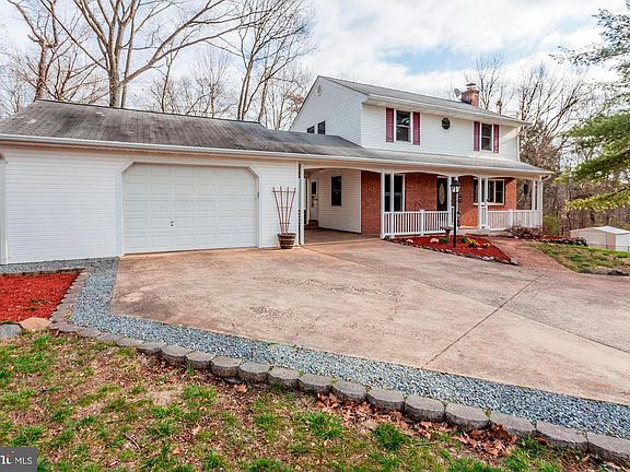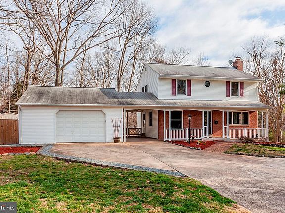 No HOA! Rare & large, private pipe stem lot siding to wooded common area. Updated colonial with hardwood floors on main & upper levels. Tiled kitchen & bathrooms have granite counters. Stainless steel appliances. Expansive living room & lower level family room. Family room boasts walk out exit to fenced back yard & wood burning fireplace. 4th bedroom in basement with built-in bookcase & window seating. HVAC replaced 2019. Detached two car garage with plenty of attic storage above. Breezeway connecting garage to house is a perfect place to enjoy covered patio space. Who needs a deck? Set up your grill & patio seating here.