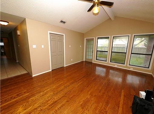 Well maintained home in quiet neighborhood! 2 large living rooms, both open to kitchen. Cathedral ceilings in front sunken living room and a pleasant atrium with skylight make this a unique and cozy home. Master bedroom has large walk in closet and spacious bathroom with garden tub, shower and his and hers vanities. Great curb appeal with gorgeous oak shade trees and rear entry garage.
