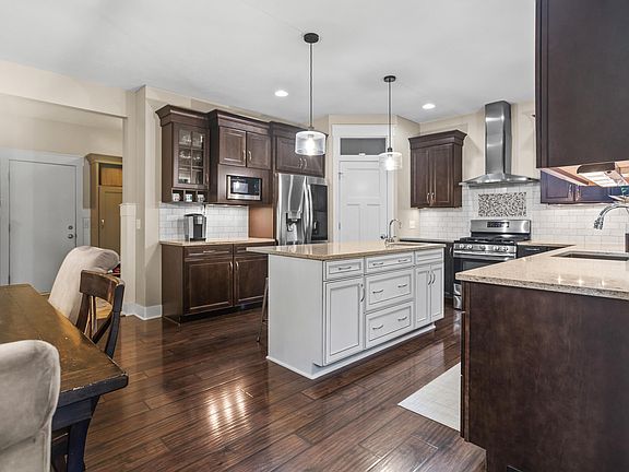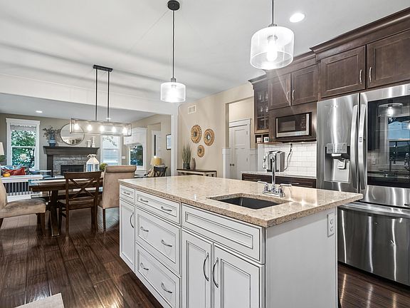 Located on a semi-private wooded lot, this thoughtfully designed home offers a great mix of comfort, space, and functionality. The main level is bright and welcoming, with oversized windows, a gas fireplace surrounded by built-ins, and an open kitchen that's both stylish and practical—featuring quartz countertops, a walk-in pantry, and a large island with a prep sink. Upstairs includes four bedrooms and two full bathrooms, including a primary suite for added privacy. The lower level adds extra flexibility with a finished family room, a fifth bedroom, and another full bath—ideal for guests or a home office. Everyday convenience is built in with main floor laundry, a mudroom with lockers, central vacuum system, a laundry chute, and built-in surround sound. Step outside to enjoy a back deck with a gas line ready for your grill, and a backyard complete with wooded views and a half basketball court—great for entertaining. This home is move-in ready and set up for everyday living.