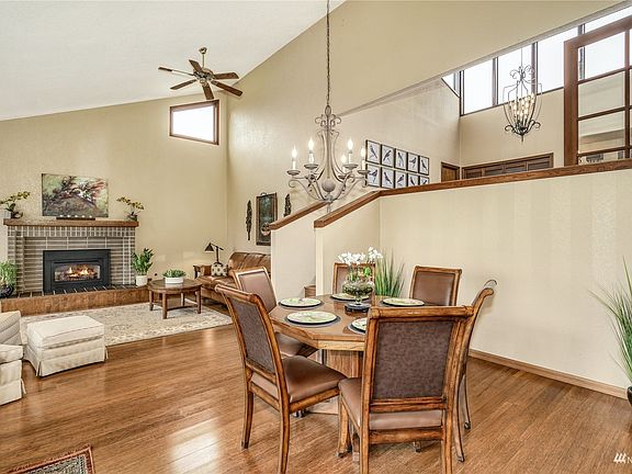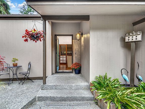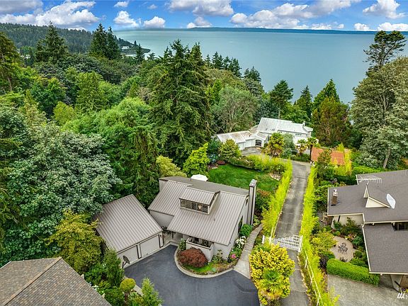 Stunning Puget Sound & Olympic mountain views from this custom home. Large view deck overlooking flat landscaped yard with the sound views. Soaring ceilings framed by new custom clad windows. Entry opens to 20 foot high glass foyer over looking large great room area with vaulted ceilings and sound views. Main floor primary bedroom and second bedroom/den. Lower level w/ 2 bedrooms and large family room, glass doors opening out to lower patio over looking yard. 3 full baths, 3 gas fireplaces. 2 car detached garage. Northwest contemporary, metal roof. Located near great Edmonds schools and Meadowdale Beach Park.