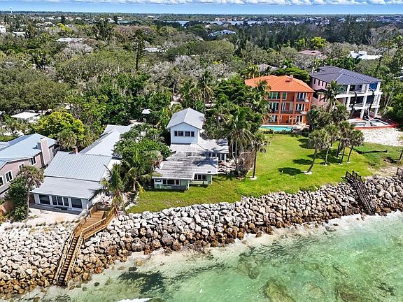 A rare Gulf-front property on Siesta Key’s legendary Point of Rocks—one of Sarasota’s most coveted and geologically unique coastal settings. Perched above the shoreline on ancient limestone formations estimated to be over 3,000 years old, this elevated homesite captures breathtaking, unobstructed views of the Gulf and spectacular nightly sunsets. Set on over one-third of an acre, the existing structure features 4 bedrooms and 4 bathrooms across a spacious split-level design with multiple indoor and outdoor living areas with flexible layouts—perfect for entertaining or relaxing in total privacy. The surrounding waters are alive with sea life and ideal for swimming, snorkeling, kayaking, or paddleboarding right from your backyard. What truly sets this property apart is its existing building footprint—a rare advantage that may allow rebuilding much closer to the water than current regulations permit for new construction. This positioning maximizes the site’s potential and preserves unmatched Gulf views. Whether you renovate, expand, or create a modern coastal retreat within the footprint, the possibilities are extraordinary. With such a large private setting, an entirely new estate could easily be designed. Just a short stroll, golf cart, or bike ride brings you to Crescent Beach and the vibrant shops and restaurants of Crescent Village. With its rare proximity to the Gulf, elevated Point of Rocks location, and limitless potential, this is one of Sarasota’s most unique and coveted Gulf-front offerings.