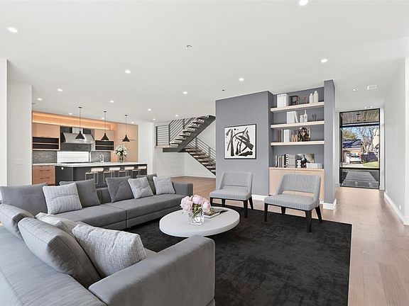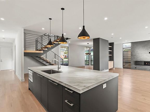 Unique modern luxury home by Kienast Custom Homes with designer selected finishes. Clean lines and bright feel throughout the home. First floor is centered around the open main rm with a fabulous kitchen, custom cabinets, island with Neolith counter tops, Viking & Liebherr appliances & large pantry. Dwnstrs master with views of backyard, gorgeous ensuite bath, walk-in shower, freestanding tub, custom closet with washer-dryer hookup. Upstrs 3 guest rms with walk-in closets and private bath. Spacious Gmrm with plenty of windows & bonus storage room. Upstrs oversized utility rm provides plenty of space for storage&crafts! Walkable to shopping & restaurants. Thoughtful attention to detail, this home is a must see!
