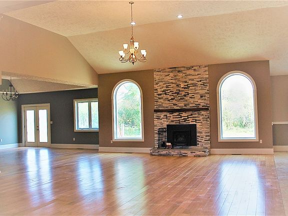 As you enter the Welcoming Ceramic Tiled Foyer, you will see the expansive Great Room and large Dining Room (both with wood flooring). The Gourmet Kitchen (Ceramic Flooring) overlooks the Great Room with Beautiful Cabinets, an Enormous Kitchen Island, and Stainless Appliances. There are 5 Large Bedrooms (wood flooring) - one of which is a Master Bedroom with an oversized Walk–In Closet, and an En-suite Bath that has a Walk–in Shower and Whirlpool. There are 3.5 baths total all with Ceramic Flooring. The home has a 1st Floor Laundry (Ceramic Flooring). The Walls and the Decorative Ceilings (that are throughout the main floor) have been painted in today’s colors. The Beautiful Glass French Doors in the Great Room can eventually lead to a deck when built. The Fireplace holds a Wood Stove Insert and is flanked on each side with two large picture windows. The unfinished walkout basement t