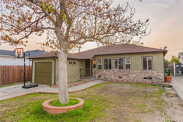 This beautiful home nestled in a great Sun Valley neighborhood close to Burbank Town Center & it also has easy access to the Golden State Freeway. Her are just a few of its many other fine features: Mature shade tree and stone facade accent its curb appeal. A flowing 1,447 square foot floor plan. The spacious living room is bathed in natural light from a very large picture window highlighting the golden hardwood flooring, plus it's also wired for surround sound. The family's cook is going to appreciate the kitchen's abundant cabinets, granite counters with full back-splash, easy care tile flooring, plus the convenience of the adjoining dining room. The family room seamlessly adjoins the kitchen and is prewired for surround sound making it very easy to serve and entertain your guest simultaneously. 4 spacious bedrooms; Master suite has a walk-in closet and private bathroom with soaking tub and stall shower. A total of 3 tiled bathrooms. Functionally located laundry room. Central heat and air for year-round comfort. Energy efficient dual paned windows will help keep your utility bills low and the interior quiet. Copper plumbing, individual inside laundry room. You're going to spend countless hours enjoying the backyard with its amazing outdoor li