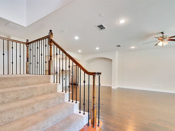 Welcome to this stunning 3-story townhouse in the highly sought-after Lake Ridge community of Grand Prairie, TX. Blending style and convenience, this home offers both luxury finishes and a low-maintenance lifestyle just minutes from Joe Pool Lake, hiking trails, and premier shopping and dining. Step inside to a light-filled open layout featuring rich engineered hardwood floors, recessed lighting, and a sweeping wrought-iron staircase that anchors the living space. The chef’s kitchen boasts granite countertops, stainless steel appliances, an oversized island, and abundant cabinet space — perfect for both entertaining and everyday living. The spacious primary suite spans an entire floor and offers a true retreat with double-door entry, a spa-style bath with dual vanities, soaking tub, glass-enclosed shower, and a massive walk-in closet. Secondary bedrooms are generously sized, providing privacy and comfort for family, guests, or a home office. Outdoors, enjoy a private fenced yard with patio, perfect for grilling, gardening, or simply relaxing with friends and family. Additional highlights include, attached 2-car garage with wood doors, multiple living areas across three levels. Elegant archways and modern finishes throughout. Situated in a prime location, this home delivers easy access to highways, DFW attractions, and the natural beauty of Lake Ridge. Whether you’re hosting friends, working from home, or simply enjoying peaceful evenings, this home is designed for the lifestyle you’ve been looking for.