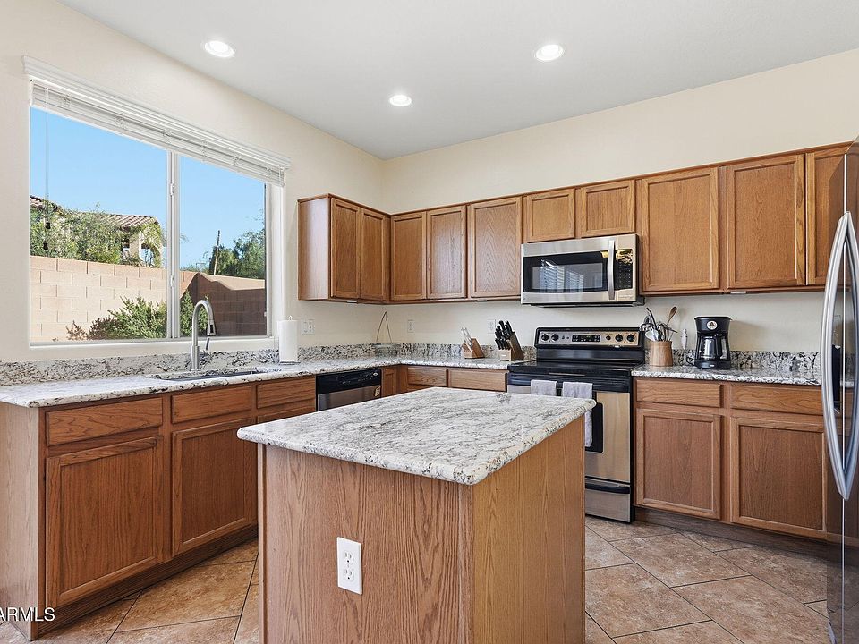 Inside, you'll find generous living spaces flooded with natural light, granite countertops, and a well-appointed kitchen complete with stainless steel refrigerator and range; all appliances convey, including washer and dryer. Multiple living and dining areas provide flexibility for hosting, working from home, or multigenerational needs.