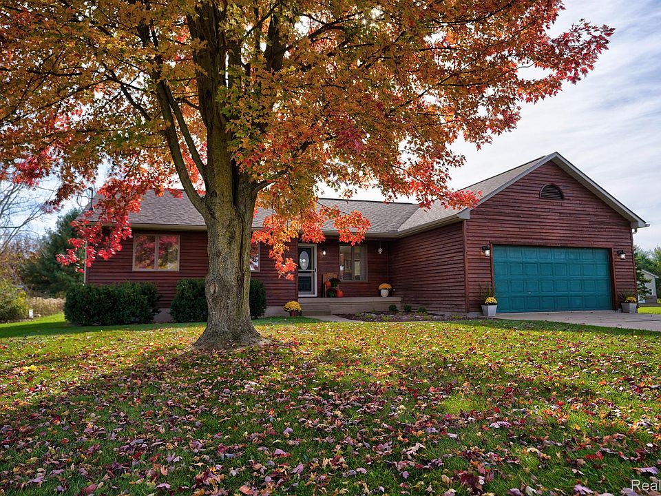 MULTIPLE OFFER RECEIVED!! HIGHEST AND BEST DUE BY MONDAY 10/28 AT 12PM! Welcome to this charming 3-bedroom, 1.5-bath ranch nestled on nearly 3 acres of serene land! This delightful home features a finished basement, providing extra living space perfect for a cozy family room or recreational area. Step outside to discover a stunning stamped concrete patio, ideal for entertaining or simply enjoying the peaceful surroundings. The property boasts brand new glass in all the windows, ensuring plenty of natural light and energy efficiency. A new roof and gutters add to the home's appeal, offering peace of mind for years to come. The entire house has been newly insulated, enhancing comfort year-round as well as the garage walls. The cedar siding was beautifully stained just two years ago, giving it a fresh and inviting look. This is a beautiful home you won't want to miss—perfect for creating lasting memories!