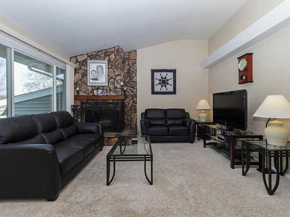 You will fall in love with this 2 Bedroom home with 2 Full Baths the second you walk through the front door! You are greeted with a stone natural fireplace and Cathedral ceiling which opens up to the formal dining room. With 2 newer bathrooms and kitchen, windows, storm doors, garage door and roof, and landscaping, all the hard work is done. A short walk to Historic downtown Greendale and tons of shopping, restaurants and parks, this is a great location for all Greendale has to offer. Dining room was once a third bedroom. Buyer could make dining room back into third bedroom for under $2000