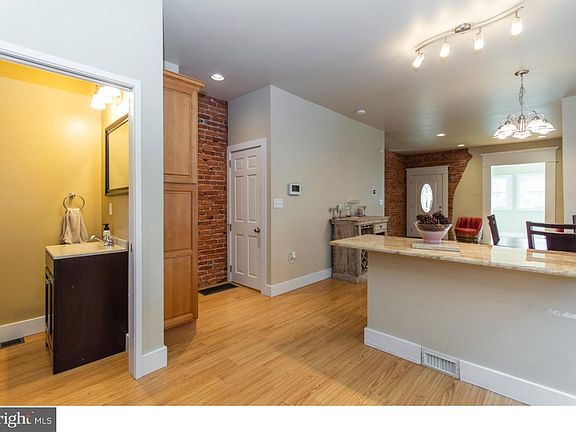 Stunning 3-bedroom, 1.5-bath twin in Northeast Philadelphia with high ceilings and a fully finished walkout basement. The main level features an open floor plan with hardwood floors, exposed brick entry, living room, dining room, powder room, and a renovated kitchen with granite countertops, tile backsplash, and newer appliances. Bonus sunroom/office overlooks the street.
