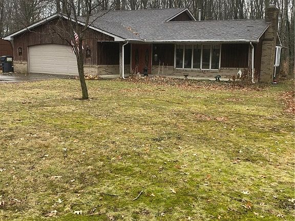 This charming 1900 sq ft, 3-bedroom, 2-bath split-level home on 2.5 acres is ready for you. Step inside to a welcoming center entrance hall and be greeted by a large living room with a cathedral ceiling and an impressive floor-to-ceiling stone fireplace, flanked by built-in bookcases and a large front-facing window. The dining room features a lovely bay window and opens onto a screened porch, perfect for summer relaxation. The kitchen is spacious, with ample counter space, oak cabinets, and new vinyl flooring leading back to the entrance hall. Upstairs, you'll find three cozy bedrooms and a full bath. The master bedroom boasts double closets and a bay window for that extra touch of elegance. The lower level offers a versatile family room, an additional full bath, a bonus room, and a laundry room with a convenient walk-out. Nestled on beautiful, somewhat secluded acreage, this home provides the serenity of country living. With a bit of TLC, it could be your dream home.