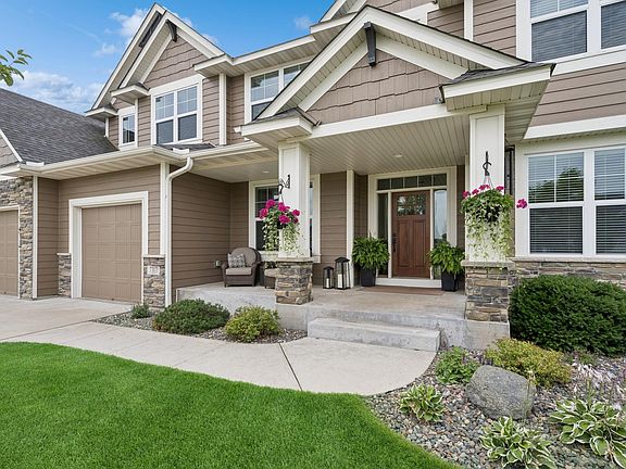 This 5-bedroom, 5-bathroom home built by Dingman offers 4,323 finished sq ft of beautifully designed living space. The open concept main floor features a bright, inviting layout with a dedicated study, formal dining room, and picturesque views of mature trees. Meticulous landscaping surrounds the property, creating a serene and private setting. The finished lower level is perfect for entertaining with a cozy gas fireplace, spacious game room, wet bar, and walkout access to the lush, landscaped backyard. Every detail inside and out has been thoughtfully crafted to create a warm, welcoming, and functional home. You’re just steps or a quick bike ride from the Rush Creek Regional Trail, which connects you to Elm Creek Park Reserve, the Coon Rapids Dam, and the Medicine Lake Regional Trail. If you prefer to stay close to home, take a walk along the neighborhood sidewalks in Oxbow Creek West and enjoy the scenic ponds and illuminated fountains throughout the community. The location is also ideal near Target’s North Campus with easy access to Highways 169, 610, and 94. Within a few miles, you’ll find plenty of shopping and dining options, including LA Fitness, Hy-Vee, Cub Foods, Caribou Coffee, and Starbucksall just about a mile away.