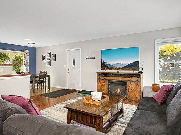 Huge partially fenced yardOver-sized garageOak hardwood floorsOpen floor planCozy family roomGranite kitchen countertops