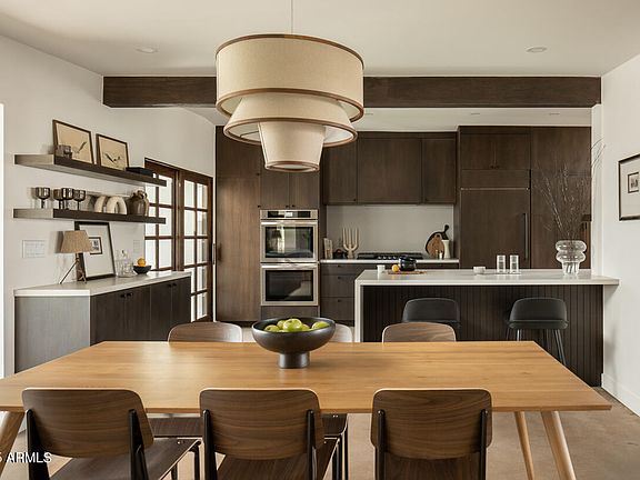 Gas-powered malm fireplaceDesigner fixturesTons of glassDesert landscapingPrivate spaHidden pantryFront patio