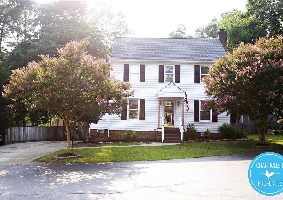 Gorgeous, light-filled, two-story home in desirable Smoketree neighborhood tucked away on cul-de-sac! Tons of charm! Community pool, tennis courts and playground! Crown molding through entire downstairs, propane fireplace, built-in shelves and bay window. Huge primary bedroom en-suite & closet and spacious additional bedrooms. Large fenced-in backyard and outdoor storage closet! W/D in unit $50/m and pets negotiable. Close to I540, Downtown, Triangle Town Center, RDU Airport, Walmart, Super Target and more! Call today!