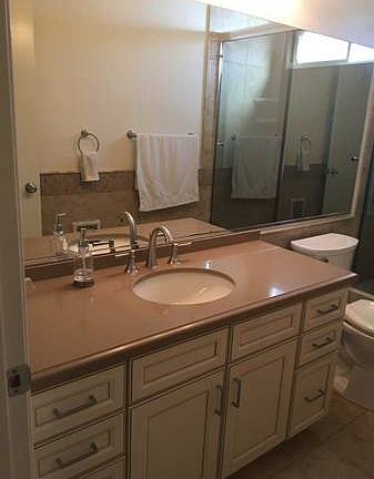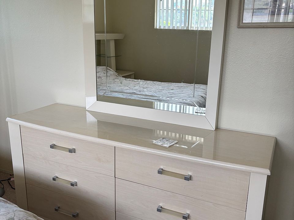 One upstairs furnished master bedroom available in beautiful home with California king bed. $1400. Has private bathroom with two separate sinks., Queen sized bed comes with two nightstands, attached bed headboard with reading light and mirror, dresser with a mirror, mounted wall television, desk & chair. Pool and spa with peaceful garden and many fruit trees to include lemon, lime, orange, banana, mint, oregano and grape leaves. It's fine if you have your own mattress or I can buy you a new one. No smoking at this property