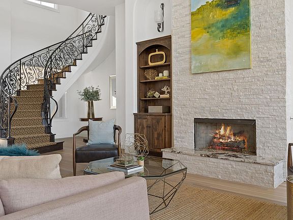 - Bookcases, Breakfast Bar, Built-in Features, Ceiling Fan(s), Chandelier, Double Vanity, Eat-in Kitchen, Exhaust Fan, High Ceilings, Interior Steps, Kitchen Island, Multiple Dining Areas, Multiple Living Areas, Pantry, Primary Bedroom on Main, Quartz Counters, Recessed Lighting, Soaking Tub, Sound System, Storage, Tray Ceiling(s), Walk-In Closet(s), Wet Bar