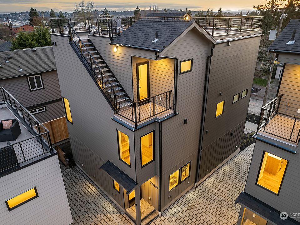 Join a thriving new-construction community by esteemed local builder, buildSOUND. Tucked neatly into Loyal Heights on a tree-lined street, this carefully thought-out design has great materials at every turn, striking the balance of form & function. Rift-sawn oak flooring, quartz counters, zoned heating & cooling. Savor life's moments or become ultra efficient in your Work From Home sanctuary. Enjoy rooftop deck views to the Olympics & beyond or simply bask in the sun. Off-street assigned parking (dedicated EV charging). Moments to unsurpassed access: transit, bike paths, top-tier schools, lush parks, fun eateries & more. Live Ballard life to its fullest & best. 7322B is 2 beds + den/WFH room. Only 2 homes left in this community.