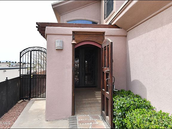 This Santa Fe Styled home exudes elegance at every turn. Abundant windows flood the space with natural light, offering picturesque views from the living room, balcony, and backyard. The principal bedroom, boasting a luxurious spacious shower and cedar walk-in closet, is conveniently situated downstairs. Ascend the graceful winding staircase to discover two additional sleeping quarters. The kitchen and breakfast area are generously proportioned and equipped with modern appliances. Completing the package are a two-car garage and a water softener.
