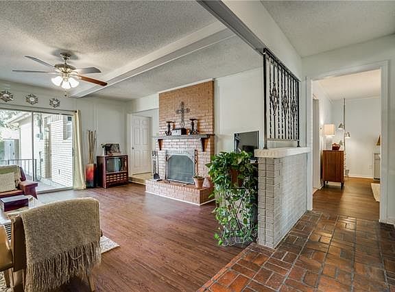 Smartly updated home with Mid-century Modern flare awaits. Double doors open to brick floor entry & spacious living rm with cozy fireplace. Updated kitchen features granite counters & stainless appliances. Newly installed laminate floors, fixtures, updated bathrooms & fresh paint make this home move-in ready. There is a new roof & refreshing pool that has just been re-plastered. This home is ready for entertaining.